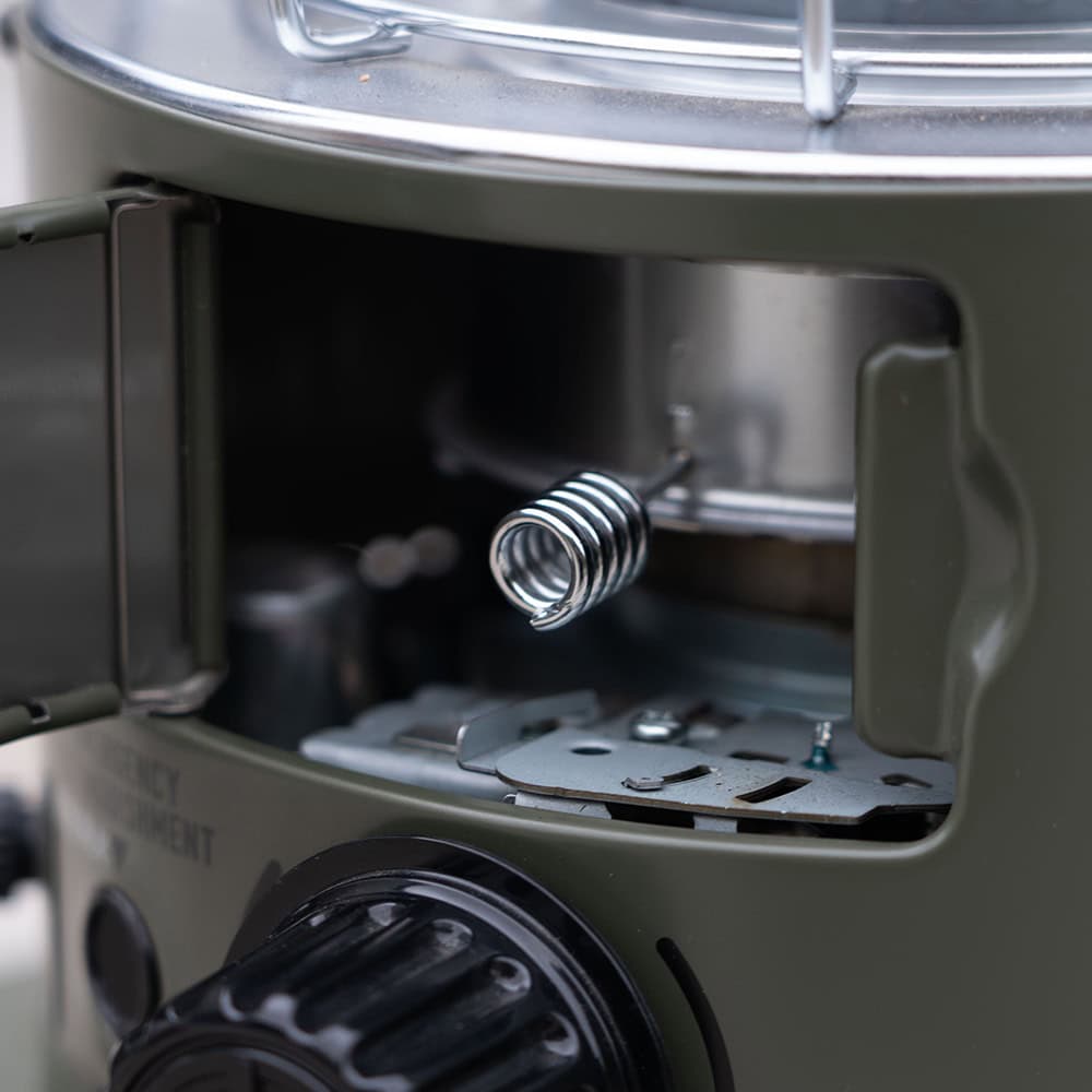 Toyotomi GEAR MISSION RR-GE25 heaters feature electronic ignition for quick and reliable startup. When you turn the ignition knob, an electric discharge instantly lights the wick. Unlike conventional paraffin heaters that rely on nichrome wire ignition heaters, which are prone to wire breakage, Toyotomi’s electronic ignition eliminates this issue, ensuring smooth and trouble-free operation.