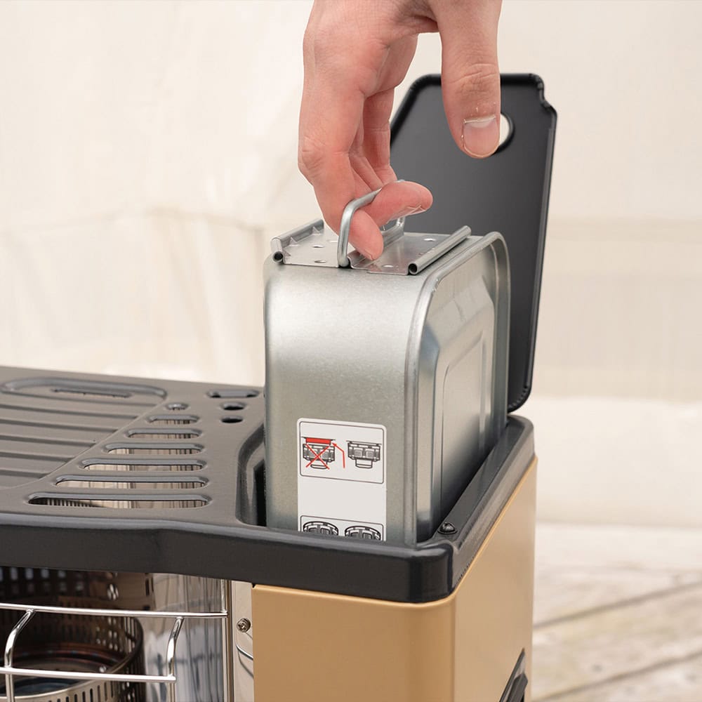 The GEAR MISSION RS-GE23 features an electronic ignition for quick and reliable startup. When you turn the ignition knob, an electric discharge instantly lights the wick. Unlike conventional paraffin heaters that rely on nichrome wire ignition heaters, which are prone to wire breakage, Toyotomi’s electronic ignition eliminates this issue, ensuring smooth and trouble-free operation.