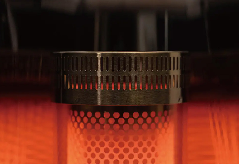 A special made metal ring is installed at the top of the combustion tube to protect the air flow and stabilize combustion. Efficient combustion stabilizes the flame and reduces the generation of unwanted odors.