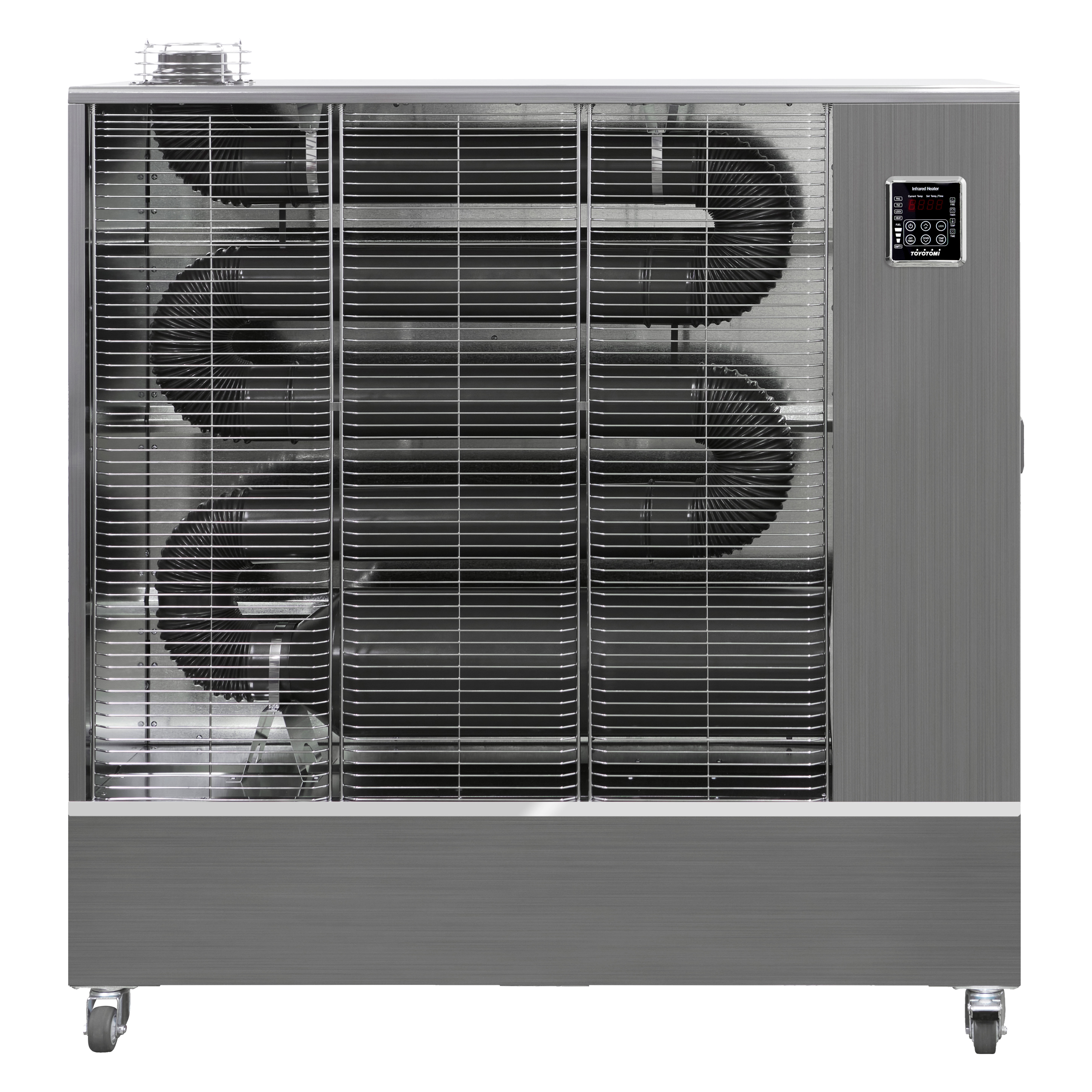 Toyotomi infrared heaters are energy-efficient, nearly odorless, equipped with a digital thermostat and operate with low noise. Because they do not use a fan, they don’t stir up dust in the surrounding environment, helping to maintain cleaner air. Each Toyotomi infrared heater is equipped with wheels for ease of use and mobility including two brakes to securely lock the heater in place, even on uneven surfaces, built-in temperature sensor to prevent overheating and a heat vent that ensures efficient distribution of warm air across the room, download the user manual to see all of its features.